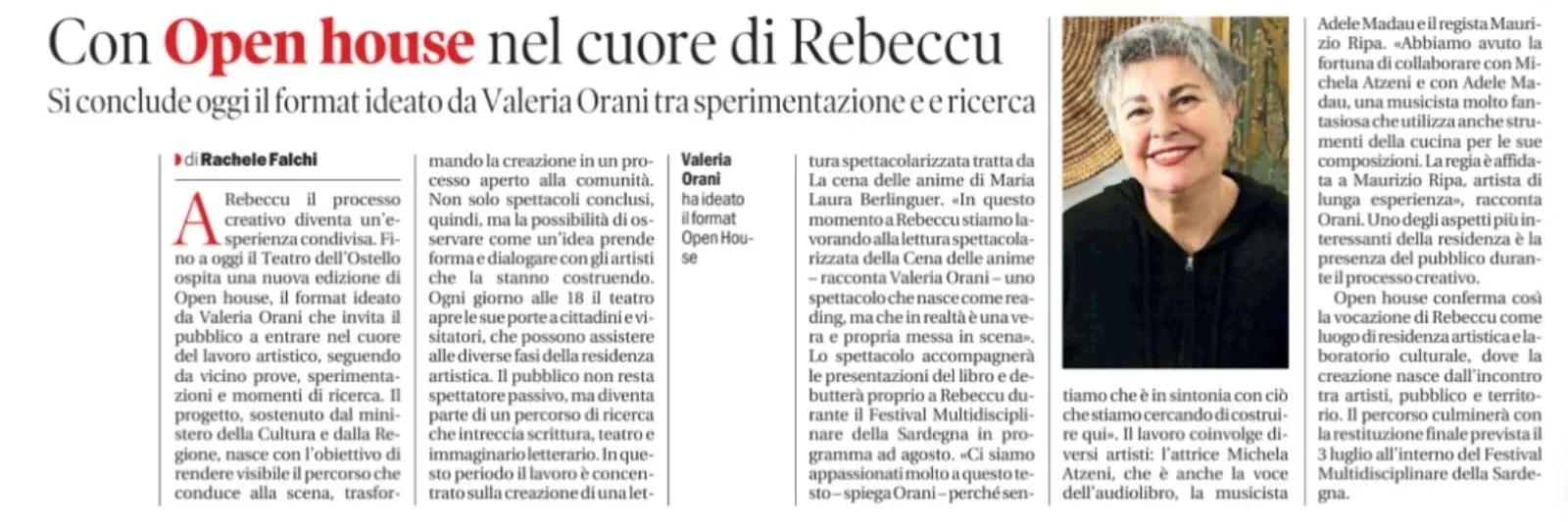© SassariToday (7/3/2026)Open House a Rebeccu: il teatro apre le porte alla comunità©UniCaRadio (Fabio Zanda 7/3/2026)